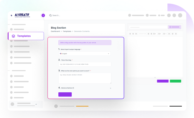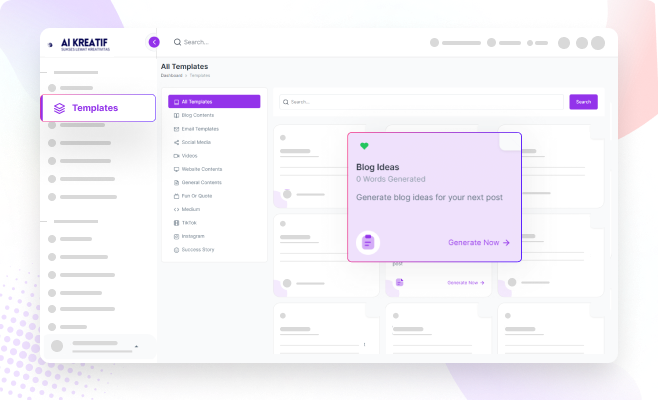 Increase the quality of your output by working with Chat by AI Kreatif prebuilt prompts. This helps you guide our software to better content and Choose from emails, social posts, long-form blog posts, and more!